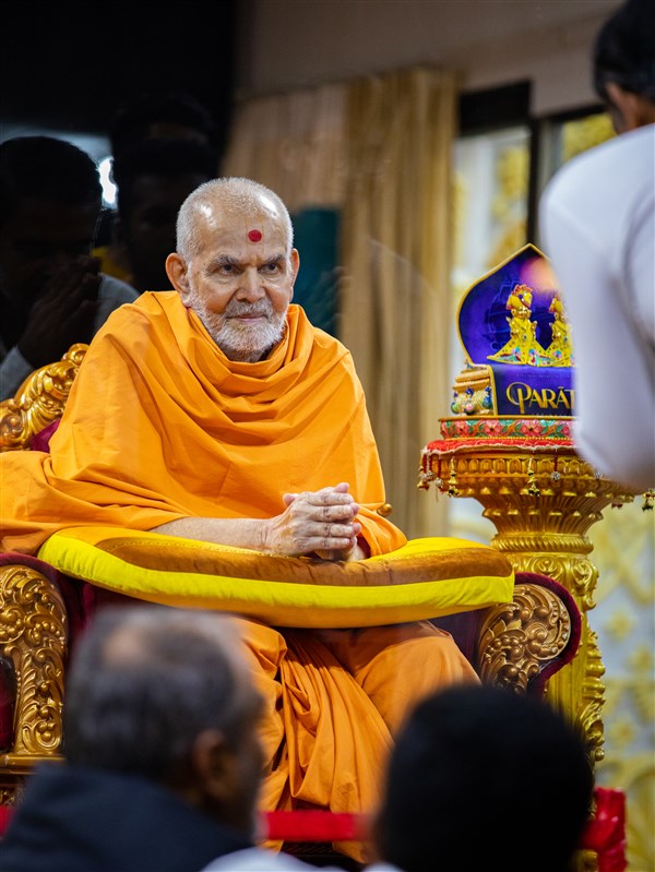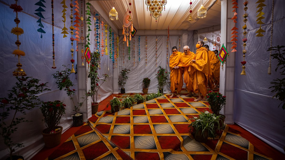 Param Pujya Mahant Swami Maharaj on his way to the assembly hall