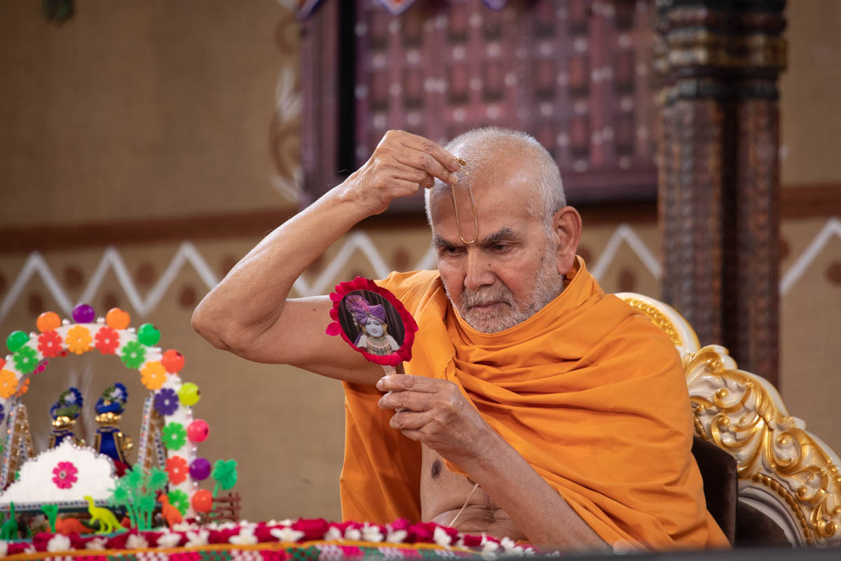 Swamishri swings Shri Harikrishna Maharaj on a hindolo