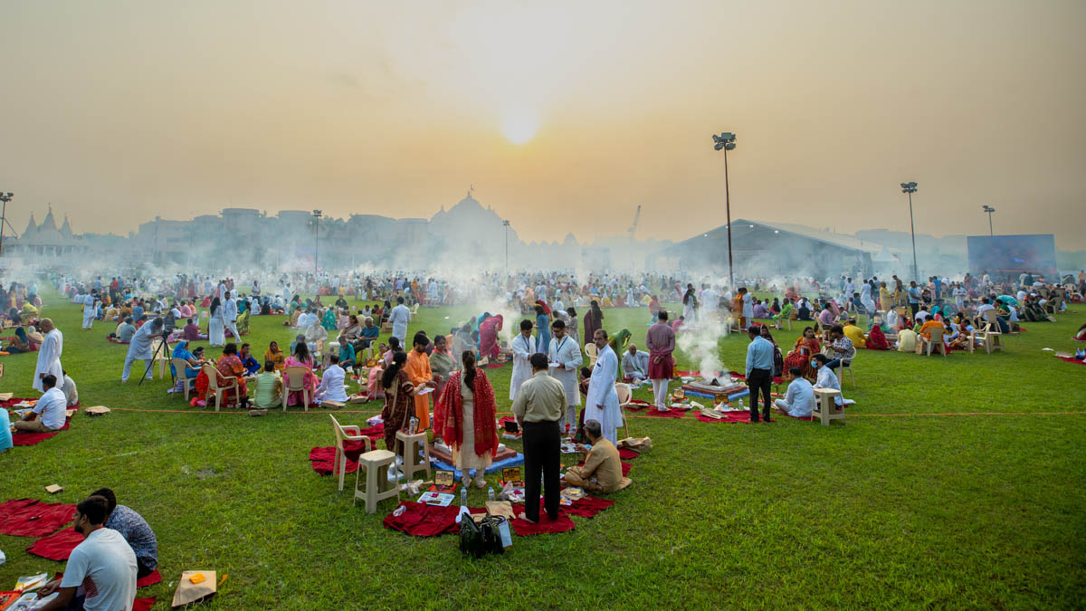 Devotees participate in the Brahmaswarup Pramukh Swamiji Maharaj Janma Shatabdi Mahayagna rituals