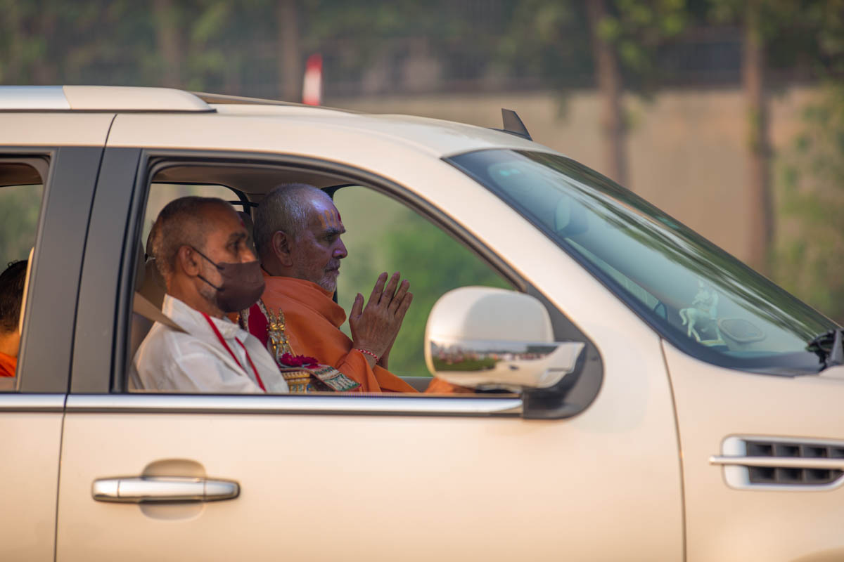 Param Pujya Mahant Swami Maharaj on his way for Thakorji's darshan