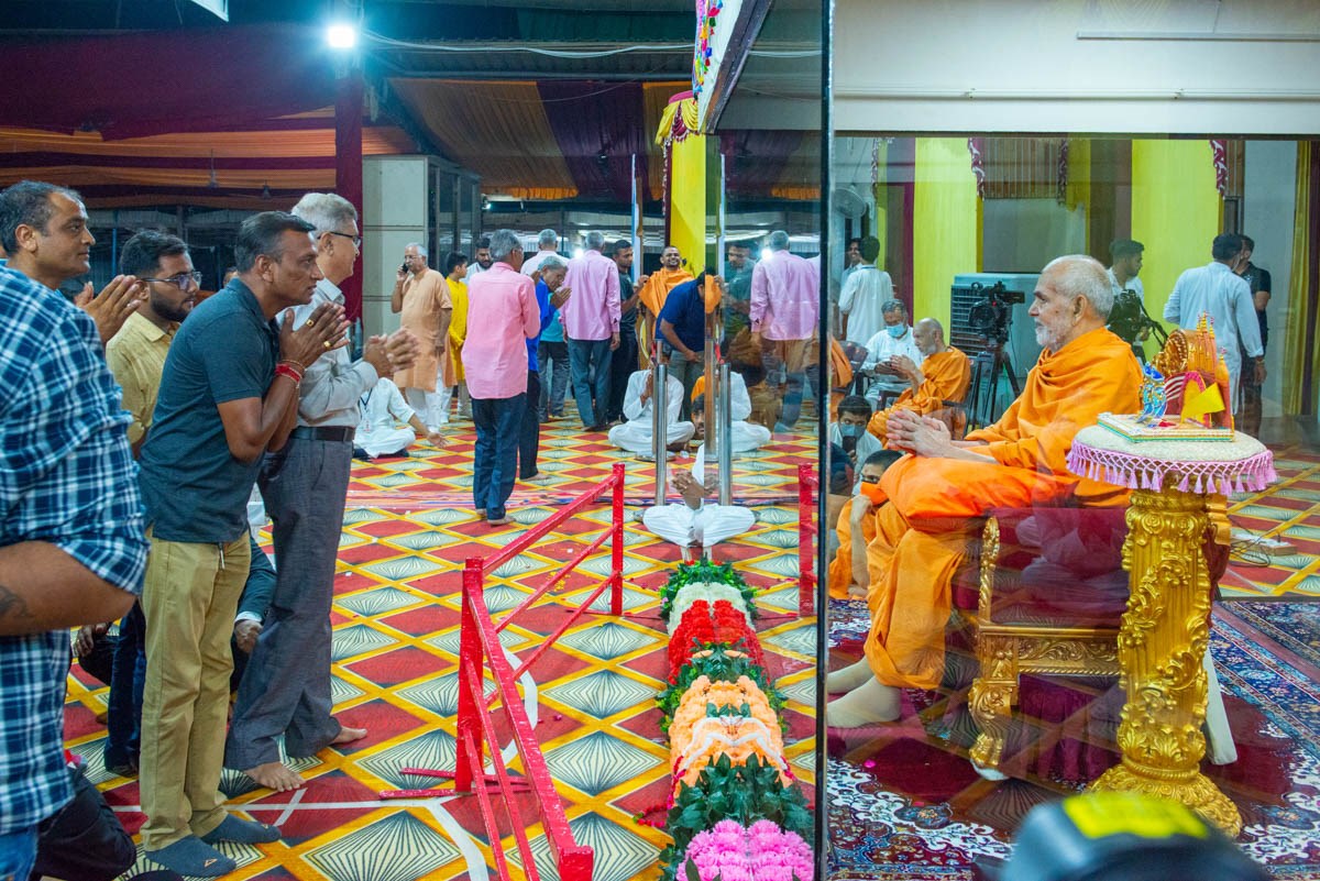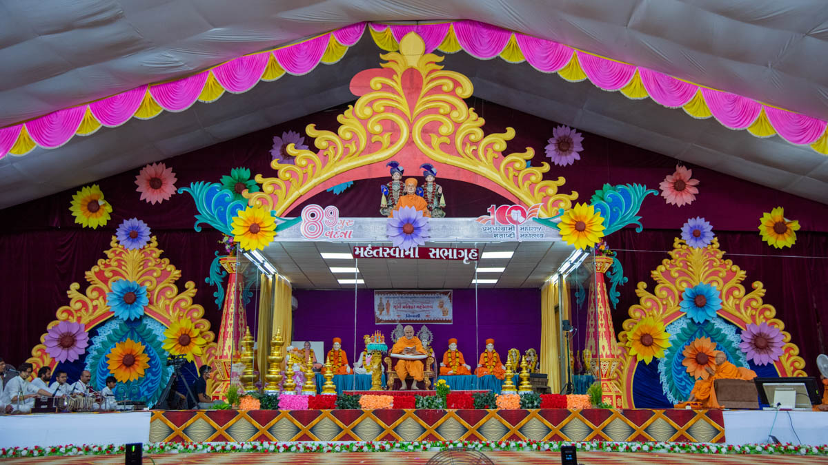 Sadhus from Shri Santram Mandirs during the evening satsang assembly