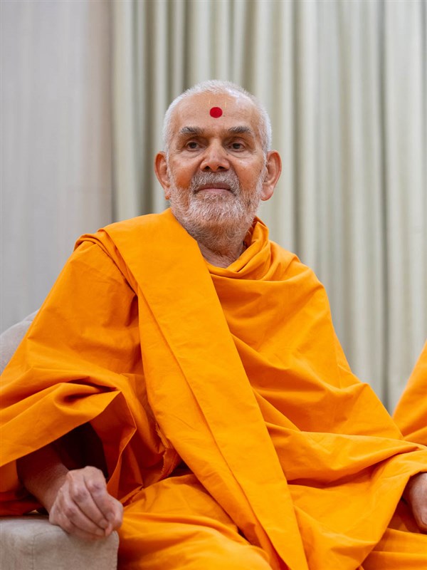 Swamishri engrossed in darshan of Shri Harikrishna Maharaj and Shri Gunatitanand Swami