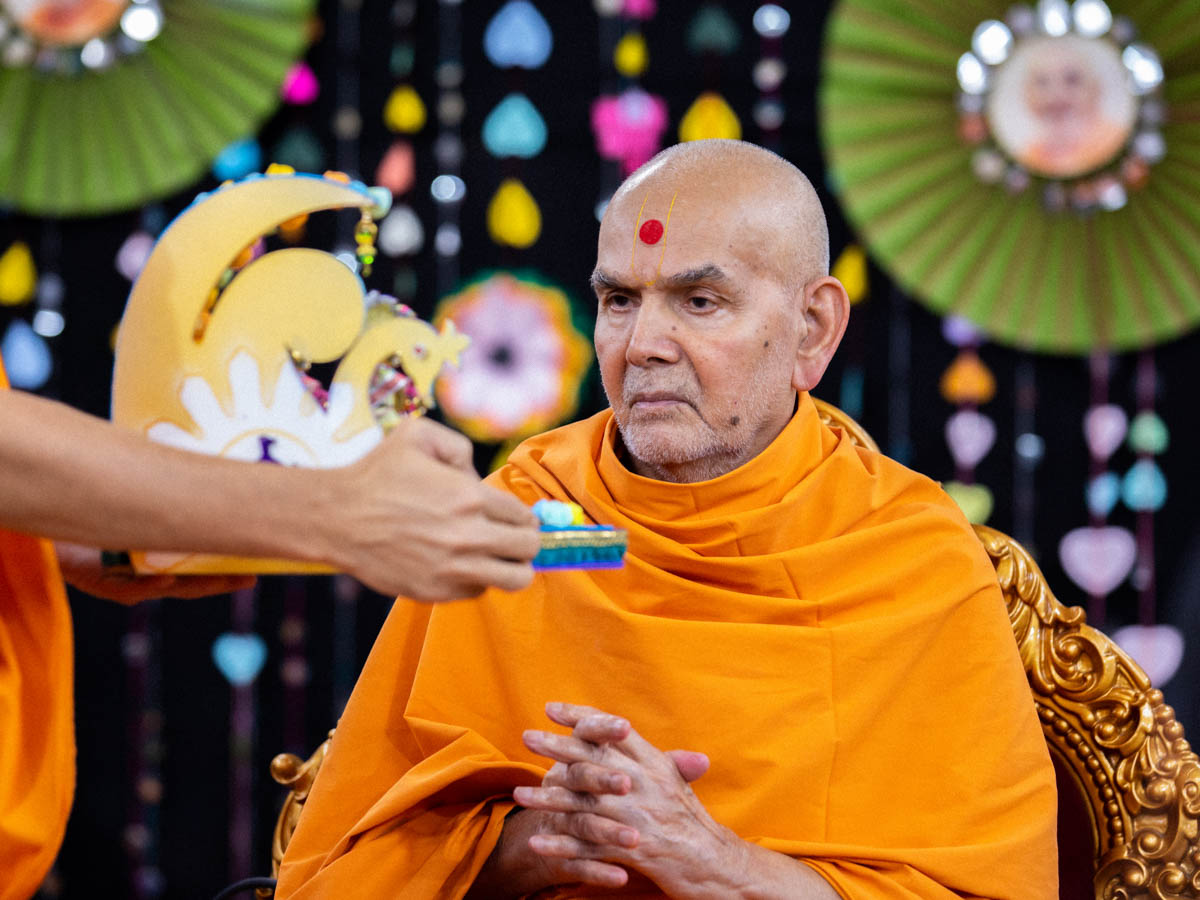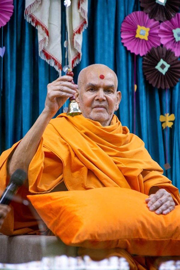 Param Pujya Mahant Swami Maharaj performs the morning arti