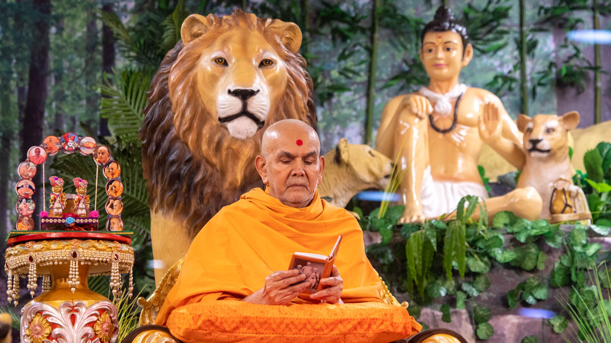 Swamishri observes the background decoration