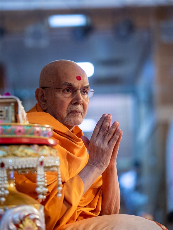 Swamishri greets all with folded hands