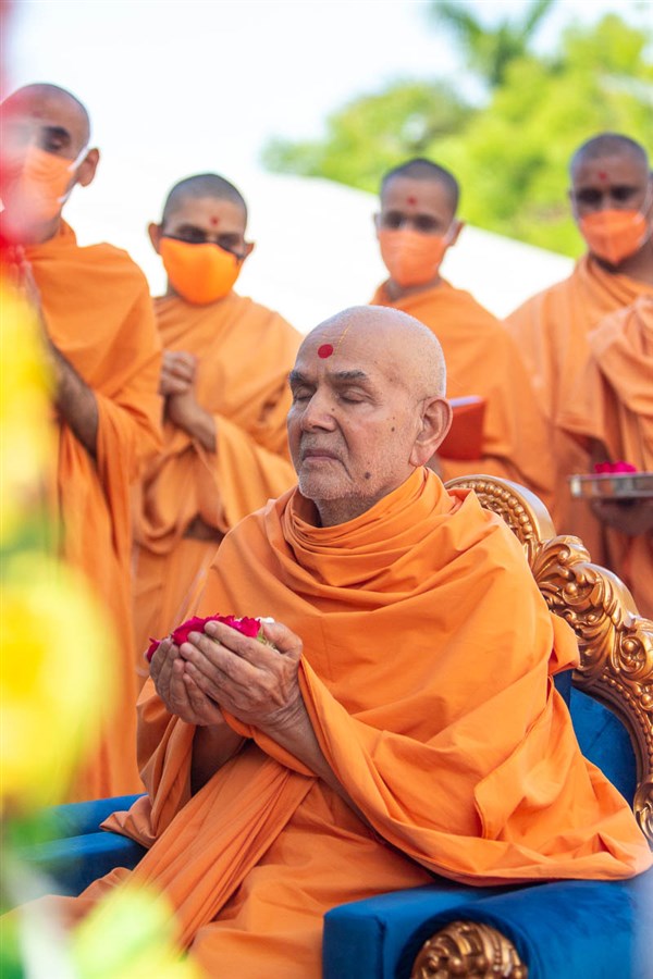 Swamishri offers mantra-pushpanajali