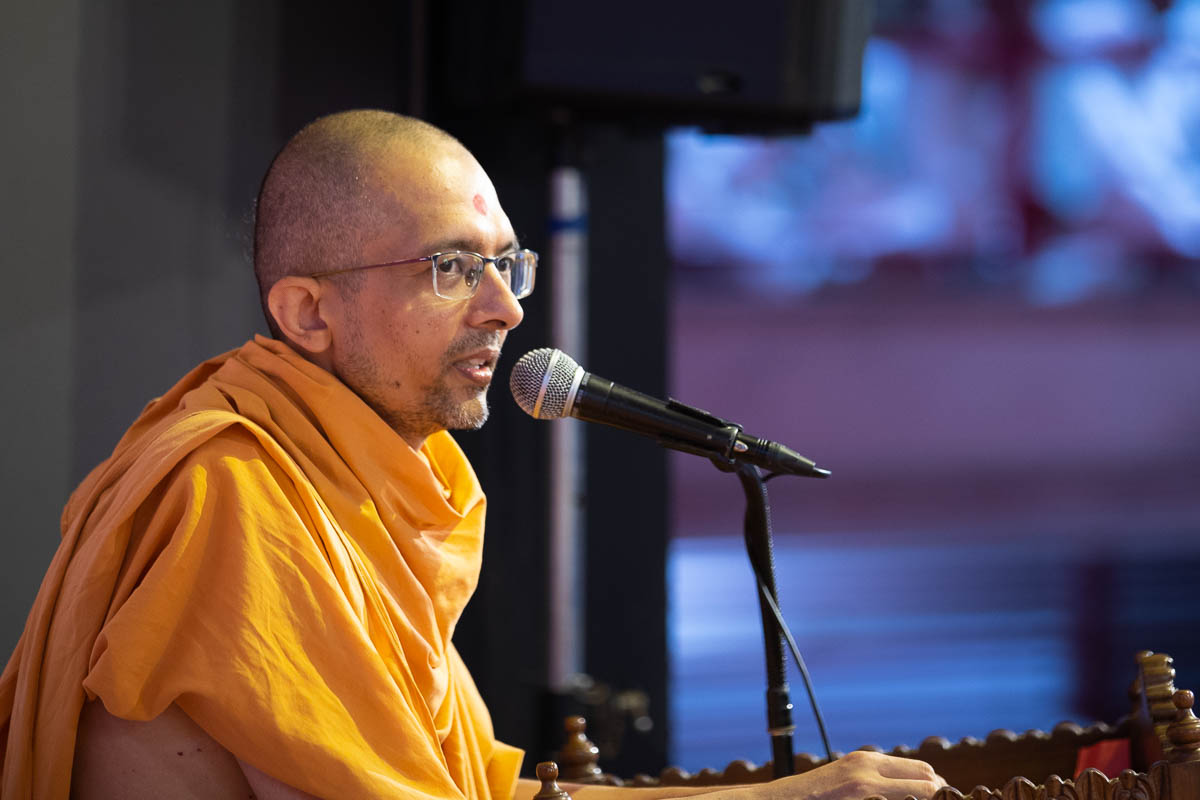 Yagnapriya Swami addresses the Sunday evening 'Shatabdi Mahotsav - Ek Nishan' volunteers assembly