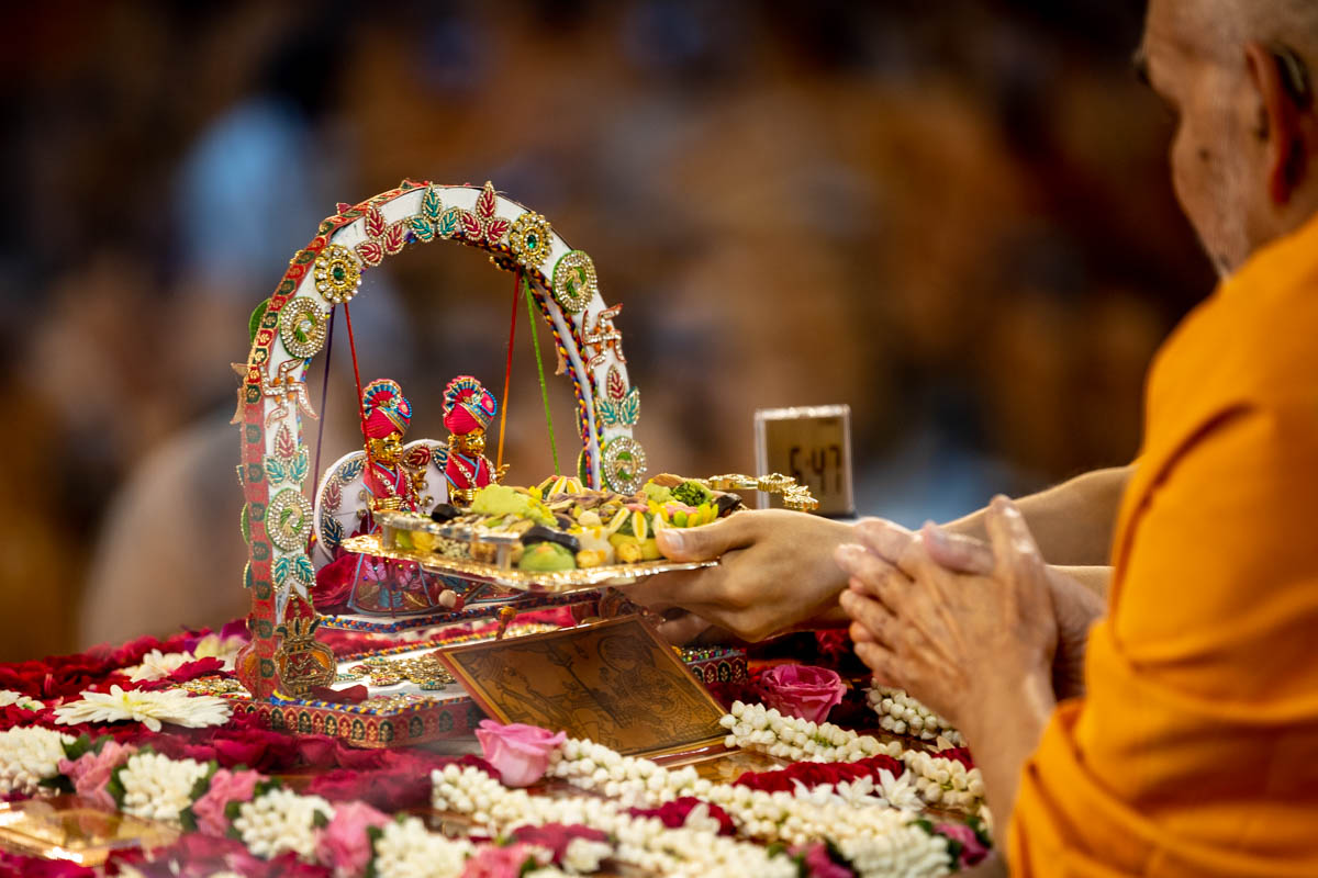 Thal is offered to Shri Harikrishna Maharaj and Shri Gunatitanand Swami