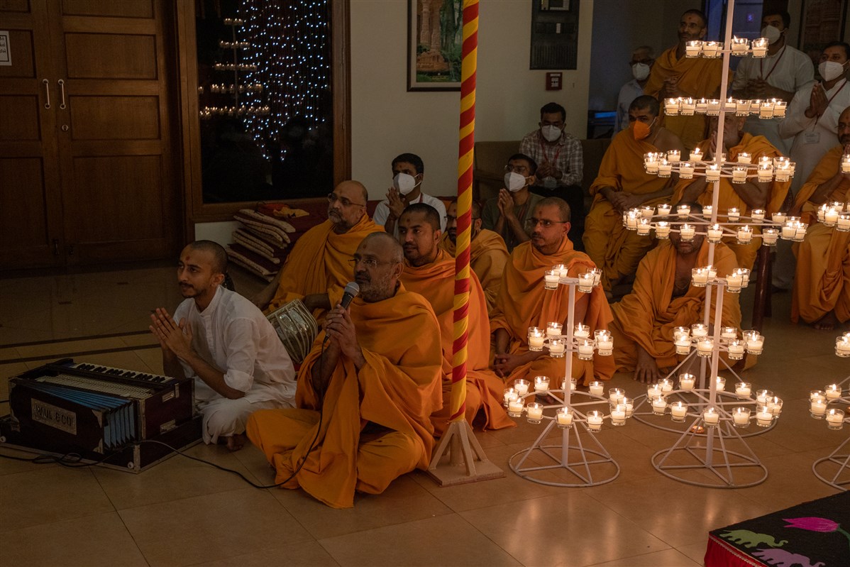 Gurumanan Swami sings a kirtan in Swamishri's daily puja