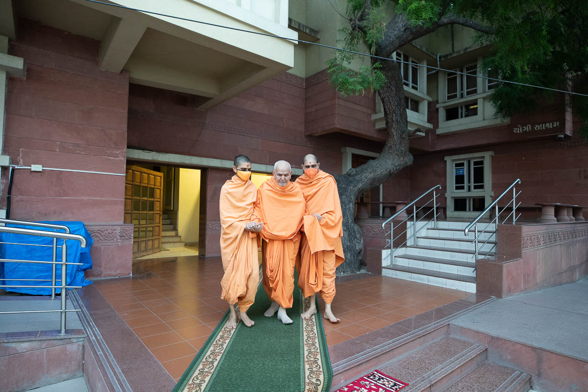 Param Pujya Mahant Swami Maharaj on his way for Thakorji's darshan