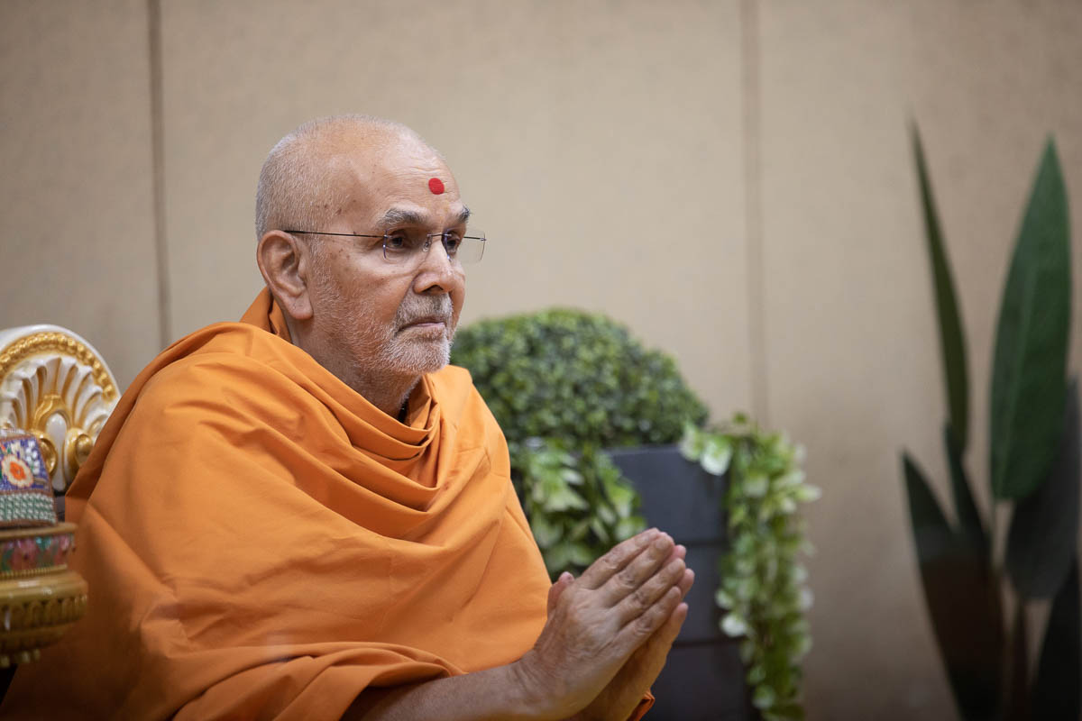 Swamishri engrossed in darshan of Shri Ghanshyam Maharaj