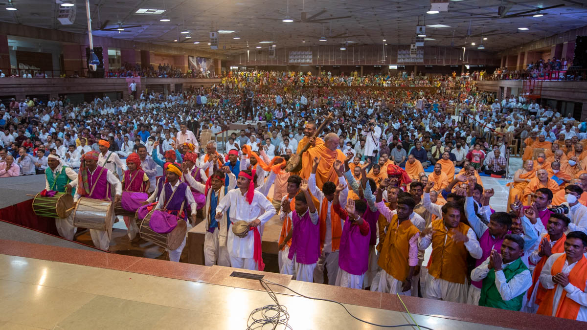 Tribal devotees sing kirtans in Swamishri's morning puja
