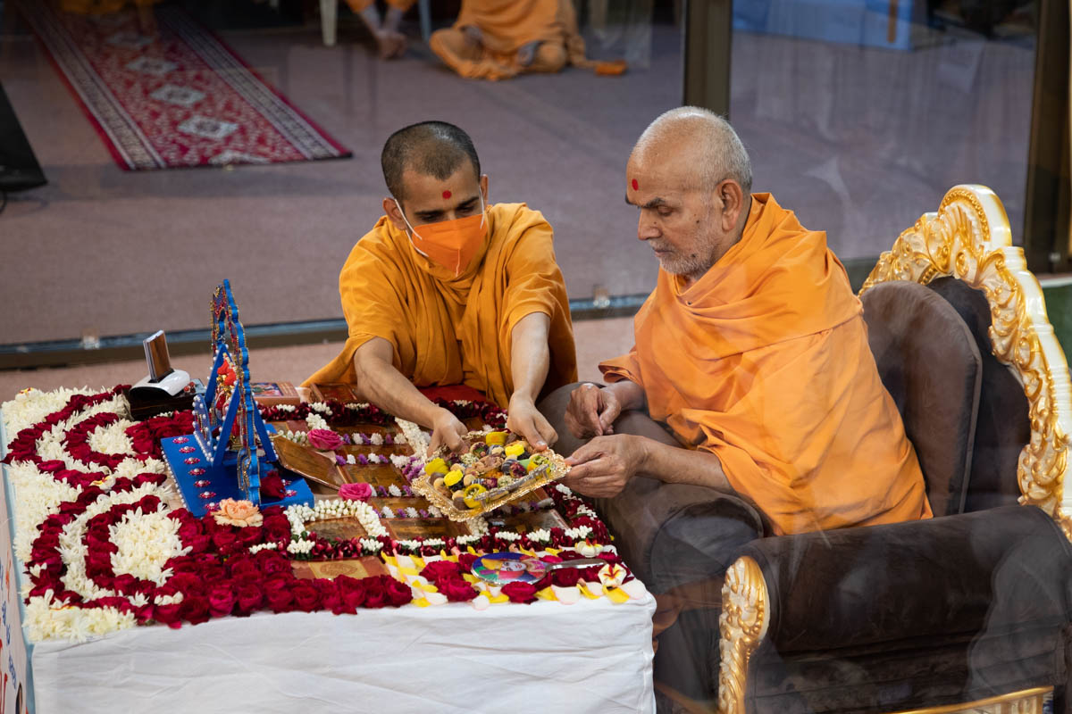 Thal is offered to Shri Harikrishna Maharaj and Shri Gunatitanand Swami