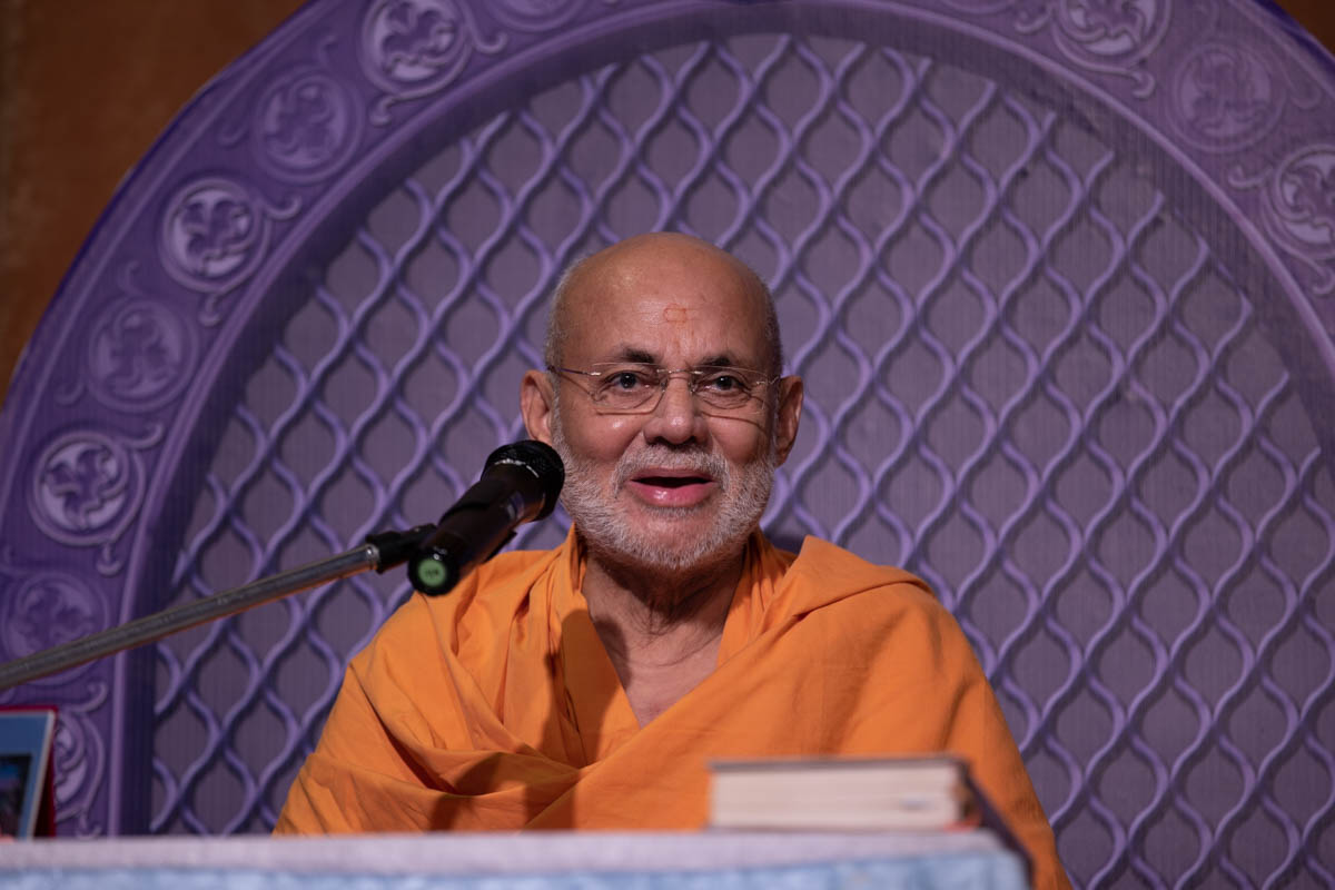 Pujya Viveksagar Swami addresses the evening satsang assembly