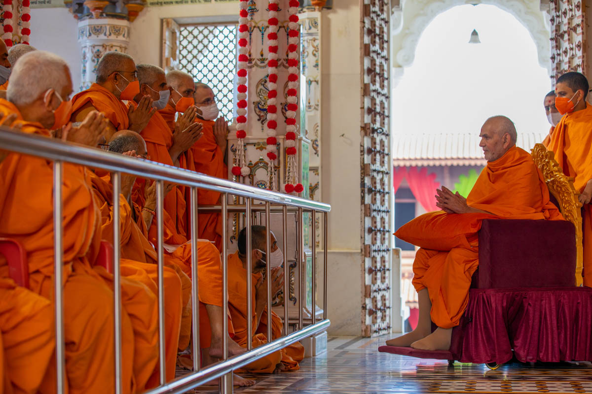 Param Pujya Mahant Swami Maharaj on his way for Thakorji's darshan
