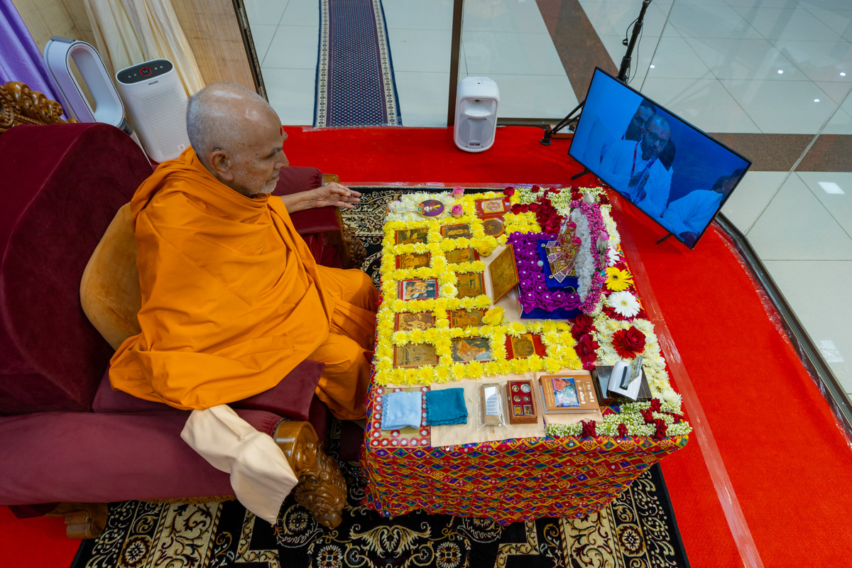 Swamishri observes the sinhasan of Shri Harikrishna Maharaj and Shri Gunatitanand Swami Maharaj