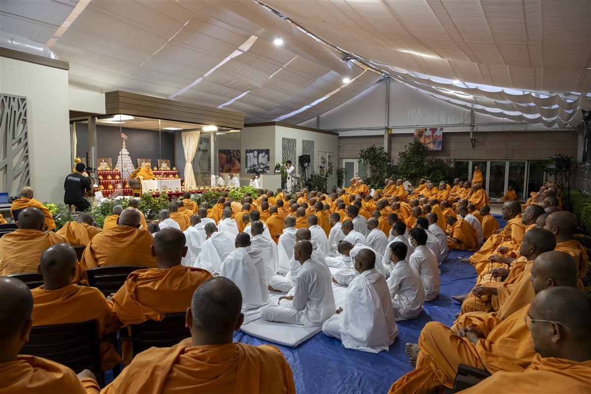 Swamishri enters the Shri Ghanshyam Maharaj Abhishek Mandap