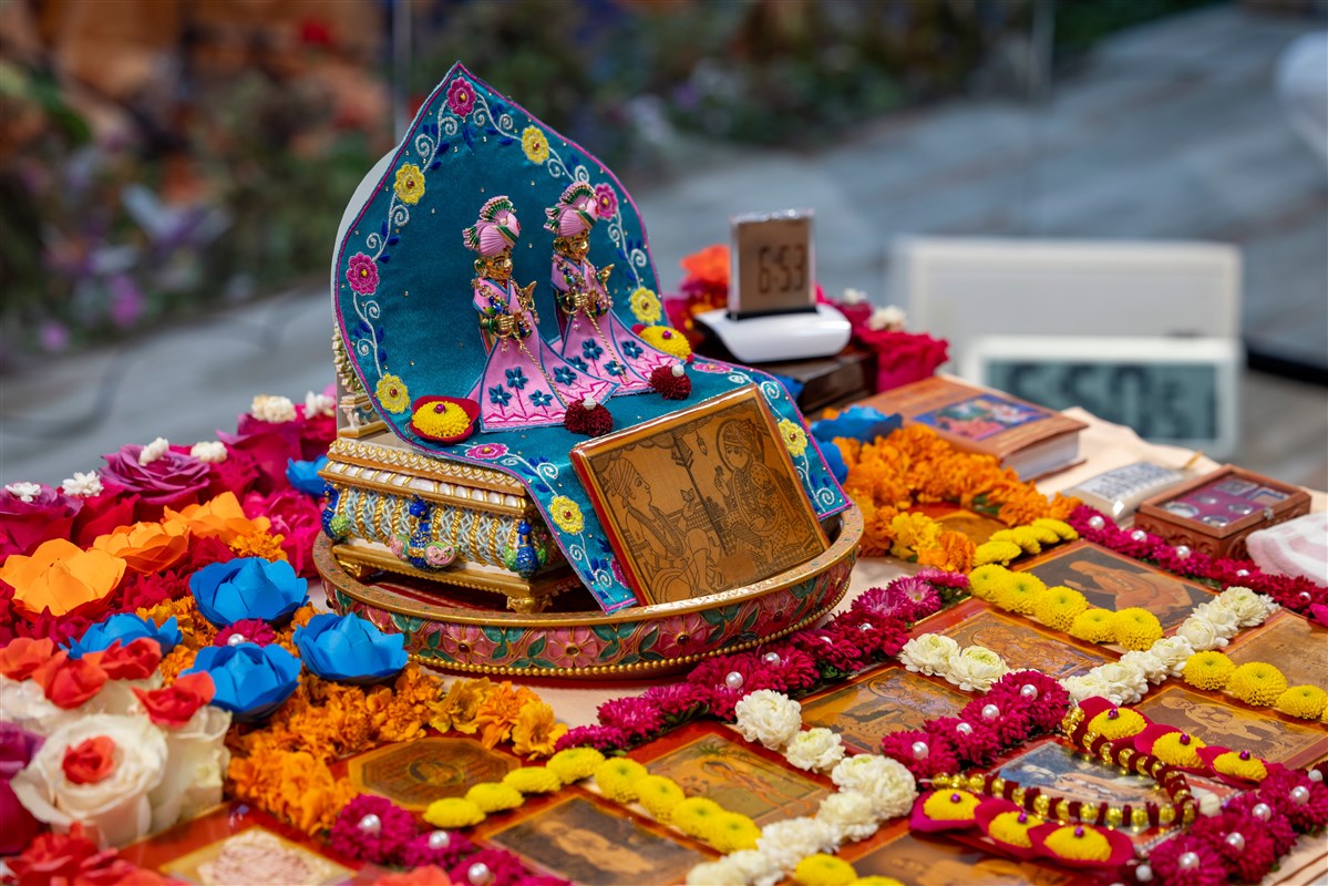 Swamishri engrossed in the darshan of Shri Harikrishna Maharaj and Shri Gunatitanand Swami Maharaj