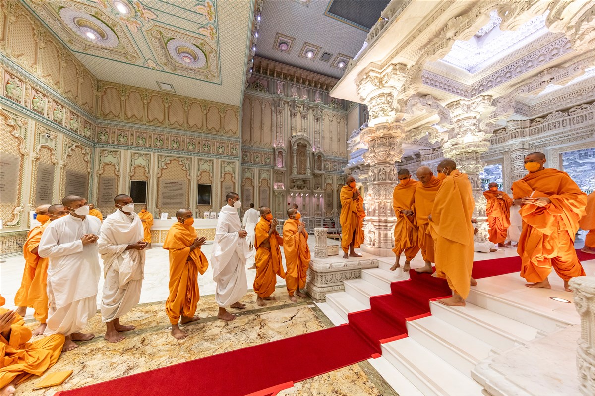 Param Pujya Mahant Swami Maharaj on his way to Thakorji's darshan