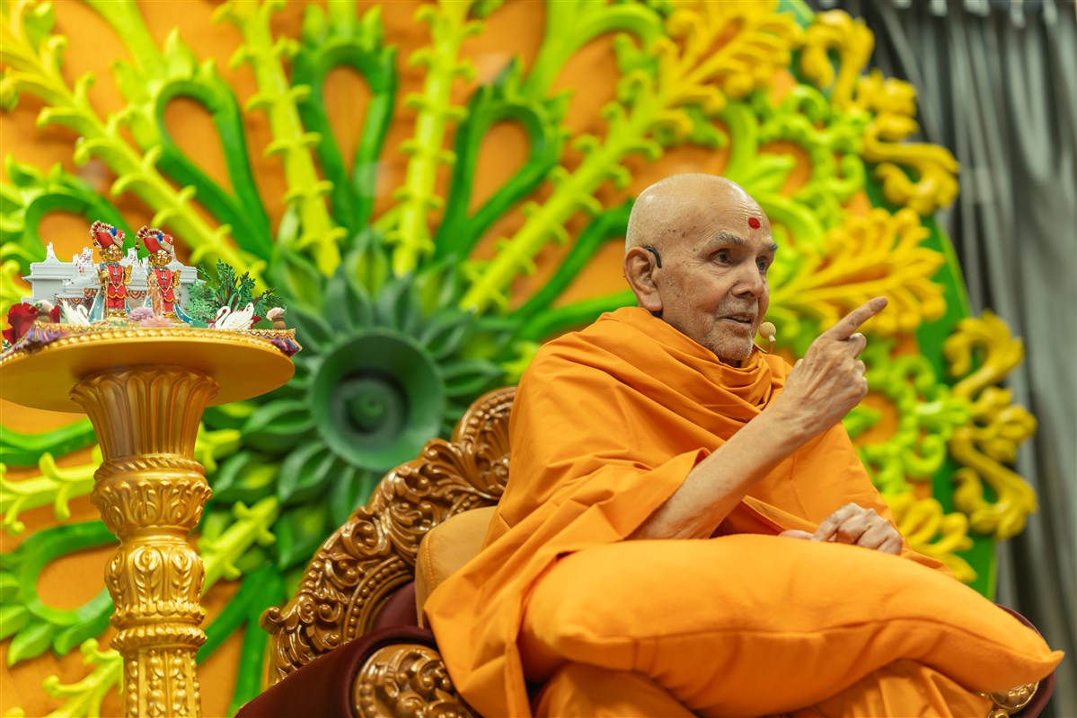 Param Pujya Mahant Swami Maharaj acknowledges and greets Swamis on his way to Thakorji's darshan