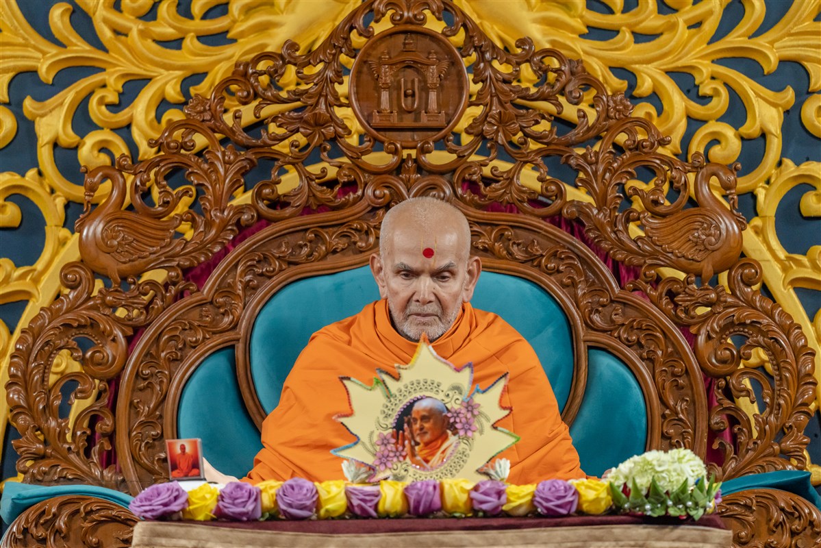 Devotees immersed in spiritual bliss during Swamishri's puja darshan
