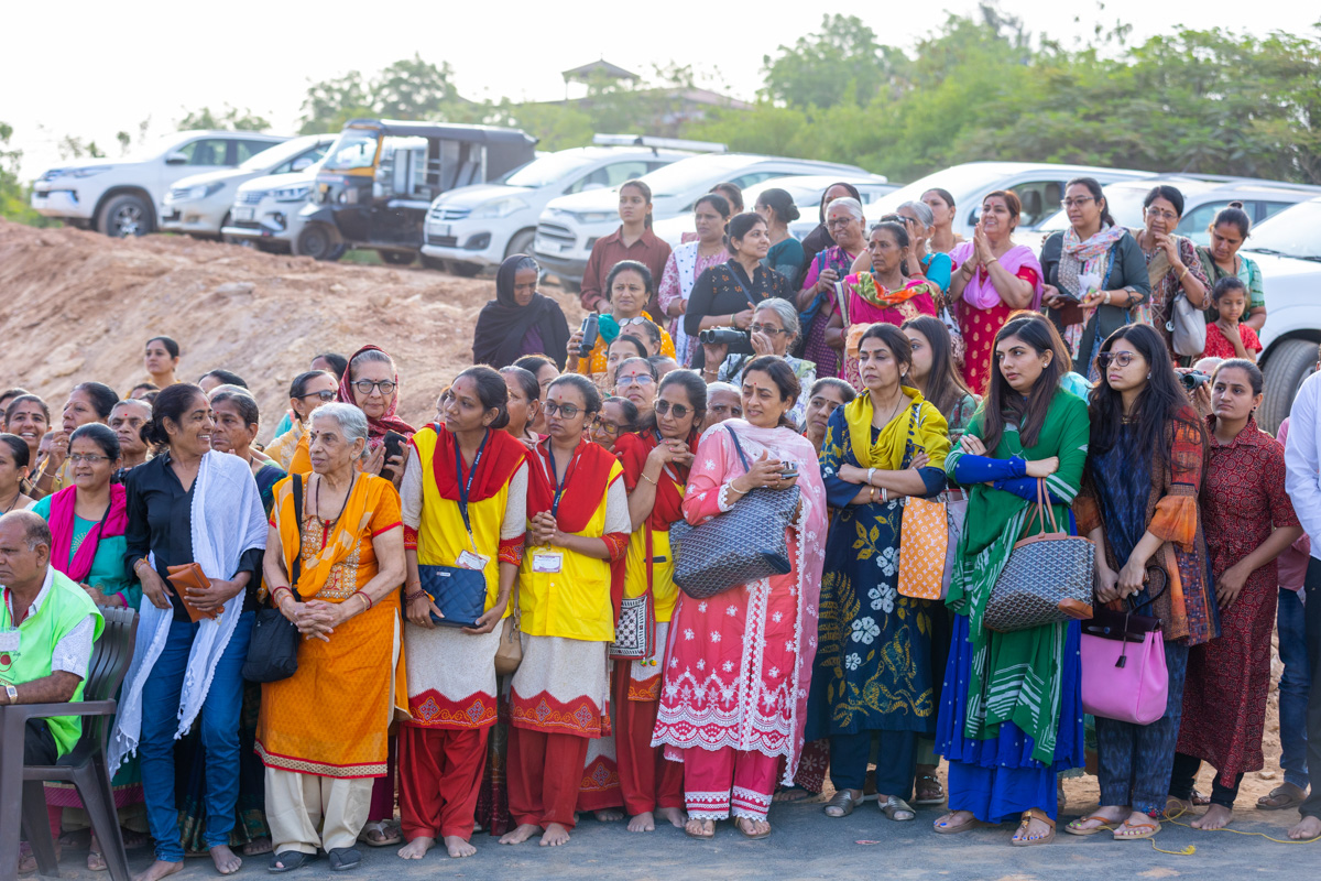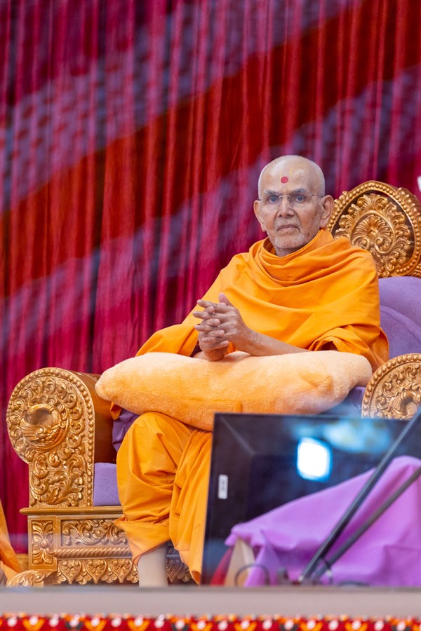 Param Pujya Mahant Swami Maharaj performs the morning arti