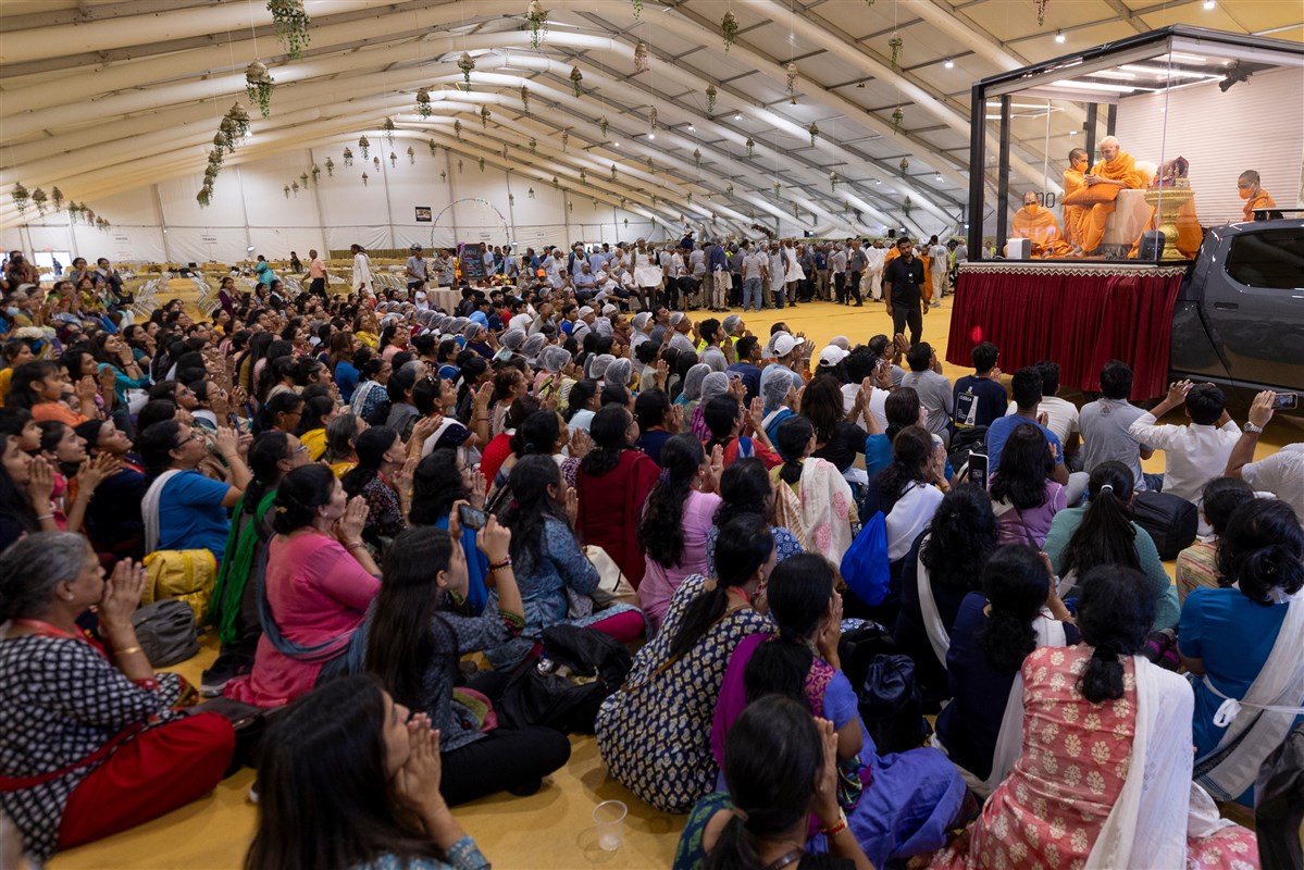 Volunteers engrossed in the darshan of Swamishri during the tour