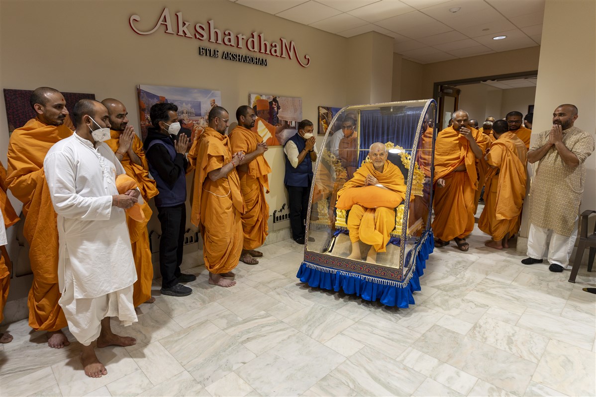 Param Pujya Mahant Swami Maharaj arrives for Thakorji's darshan