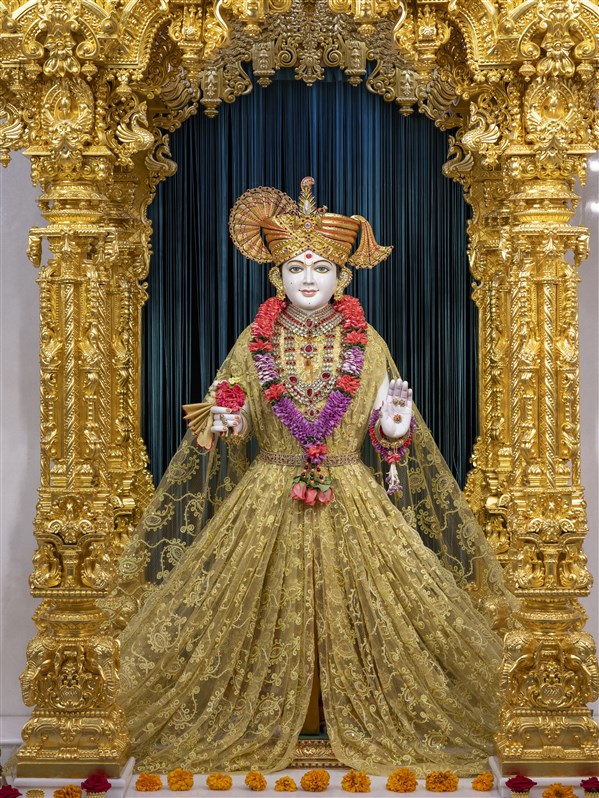 Swamishri engrossed in the darshan of Shri Ghanshyam Maharaj