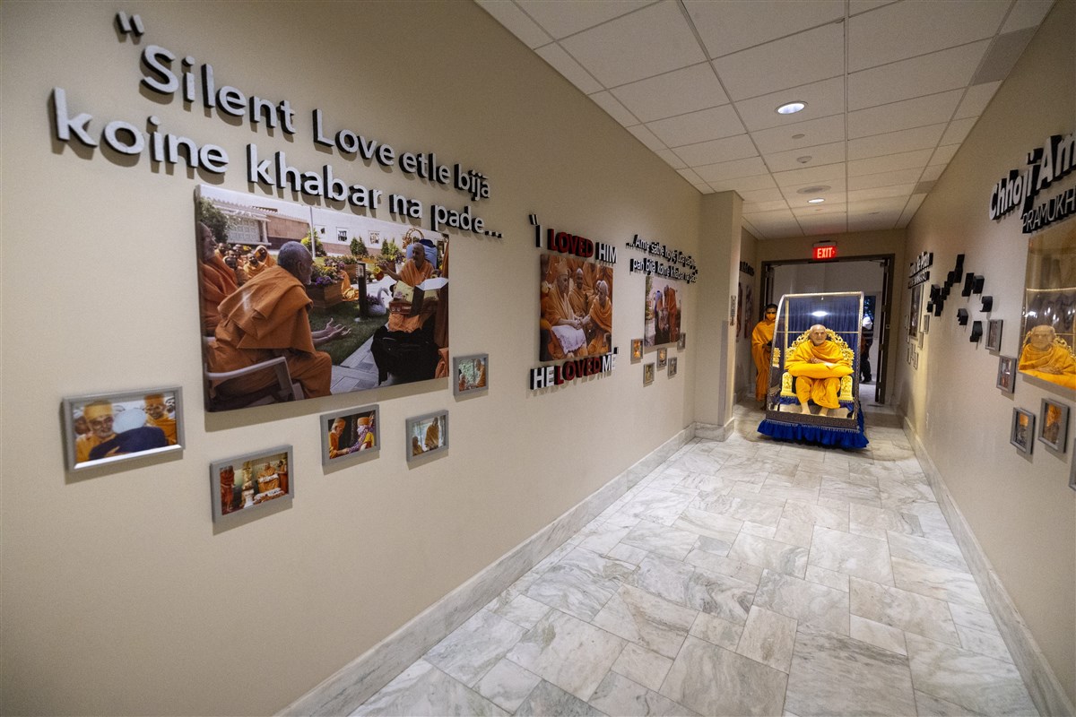 Param Pujya Mahant Swami Maharaj arrives for the darshan of Thakorji