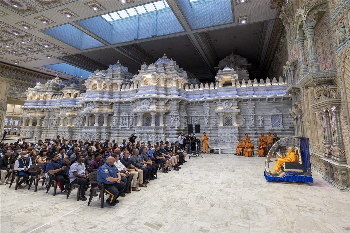 Swamishri arrives at the Robbinsville Township Appreciation Assembly