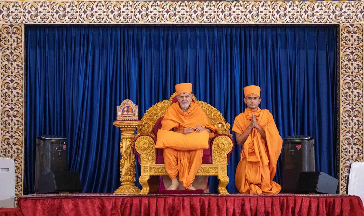 Swamishri engrossed in darshan of Bhagwan Swaminarayan and Aksharbrahma Gunatitanand Swami