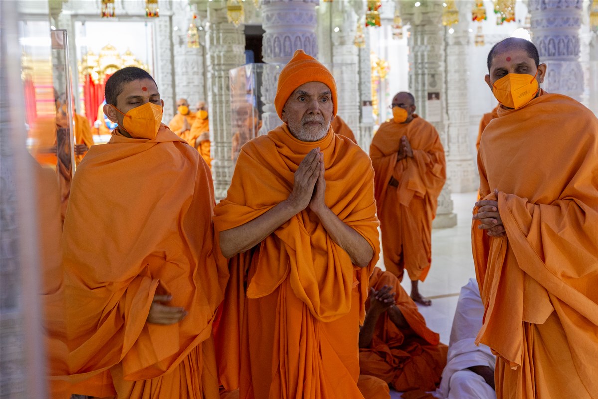 Swamishri requests a slight adjustment in the position of the murti to enhance the experience of darshan