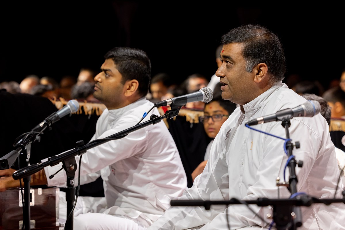 Devotees offer kirtan bhakti during Swamishri’s puja