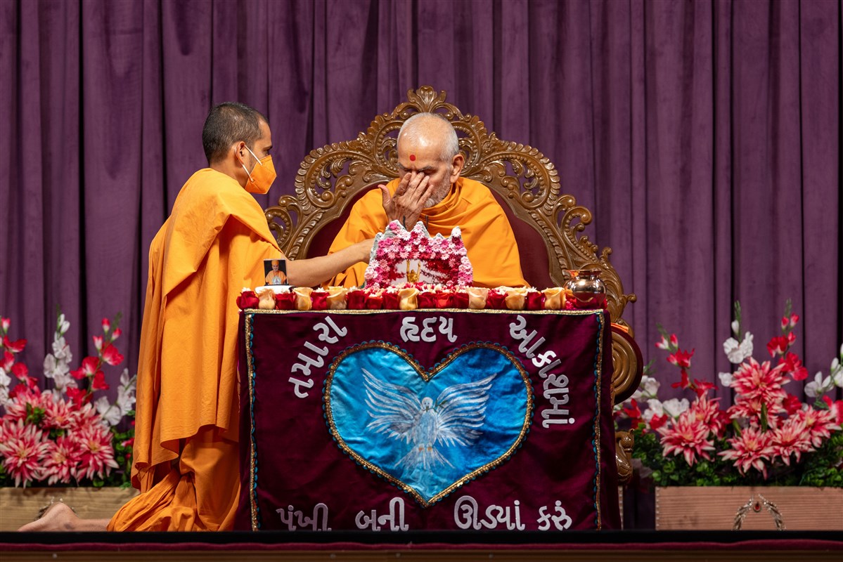 Swamishri sanctifies the 'Karika-Jayi' certificate