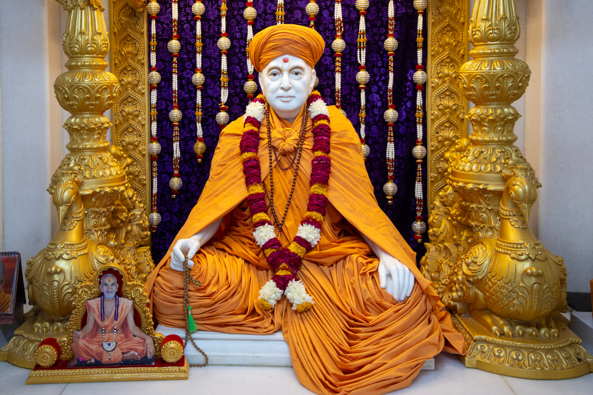 Swamishri engrossed in darshan of Shri Dharmakul