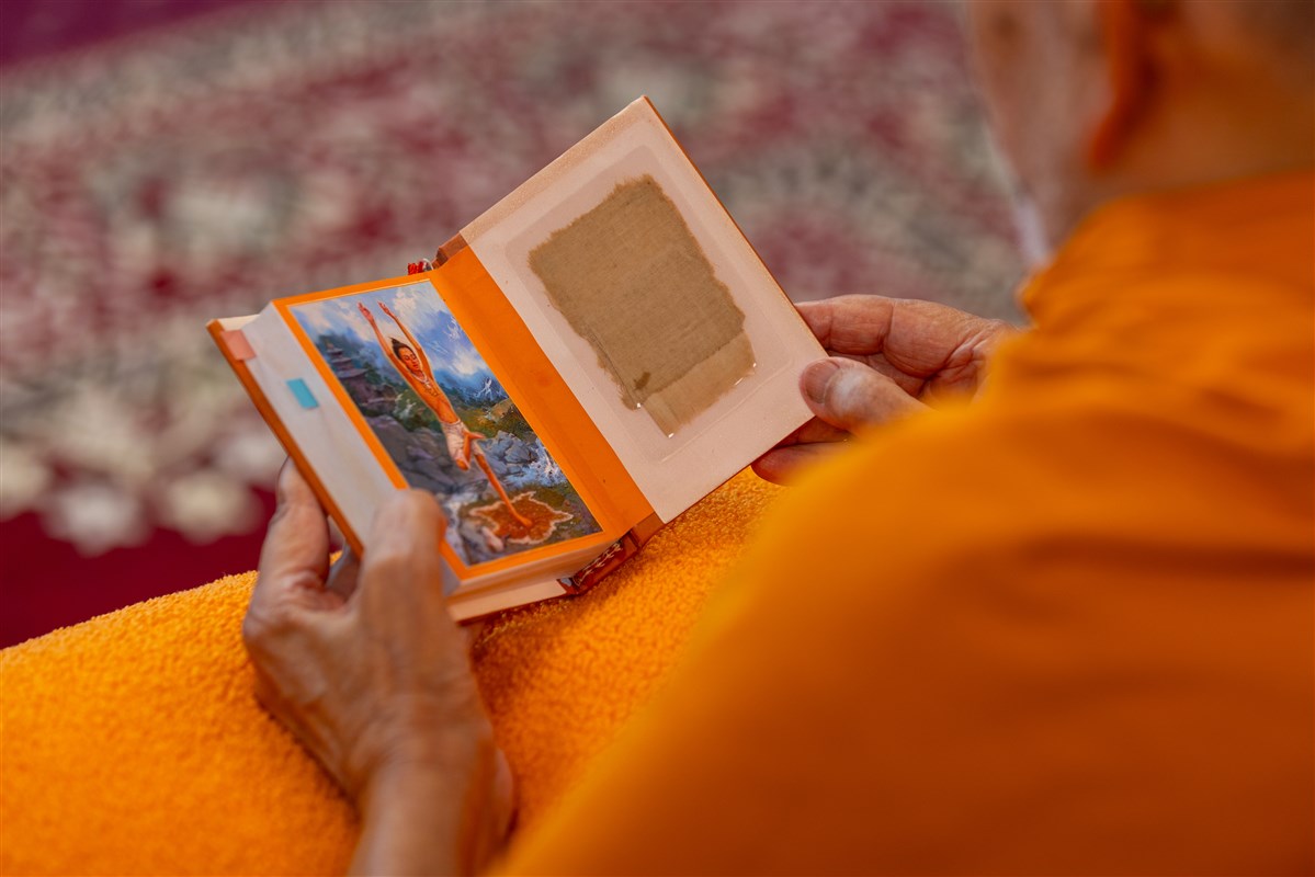 Swamishri engrossed in darshan of Brahmaswarup Shastriji Maharaj