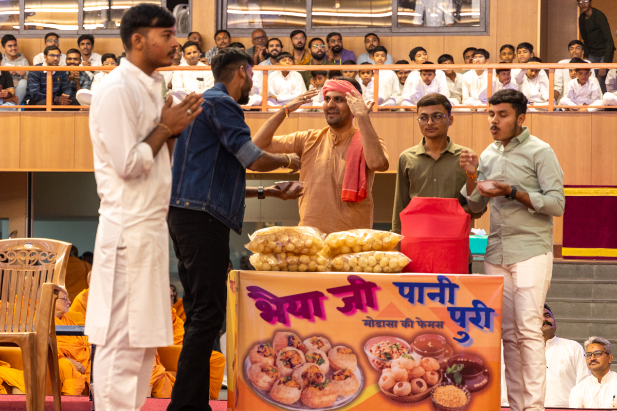 Children lead everyone in reciting the sadhana mantra and daily prayer in Swamishri's puja