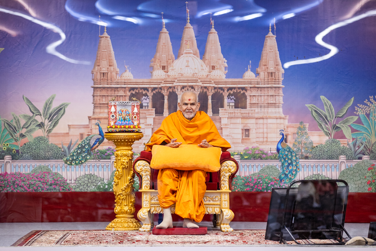 Swamishri engrossed in darshan of Shri Ghanshyam Maharaj in the evening
