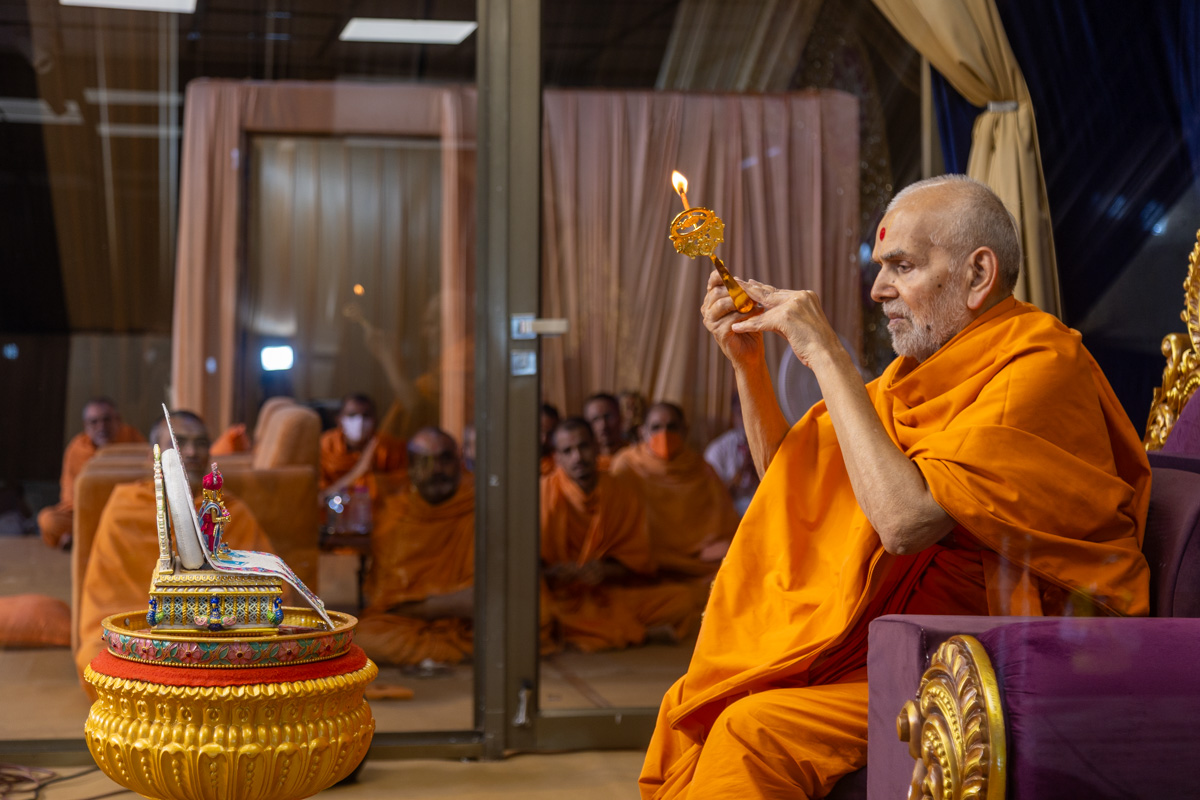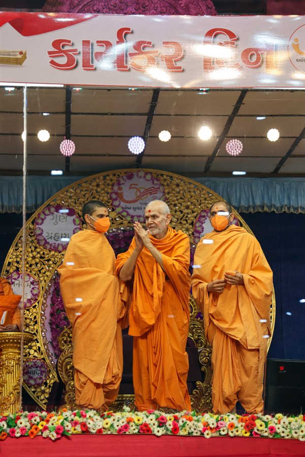 Param Pujya Mahant Swami Maharaj greets all with folded hands