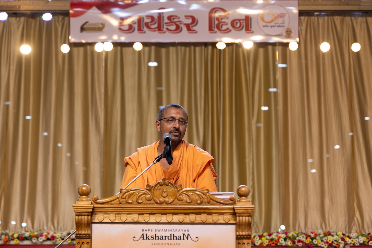 Vivekmuni Swami addresses the Karyakar Din assembly in the evening