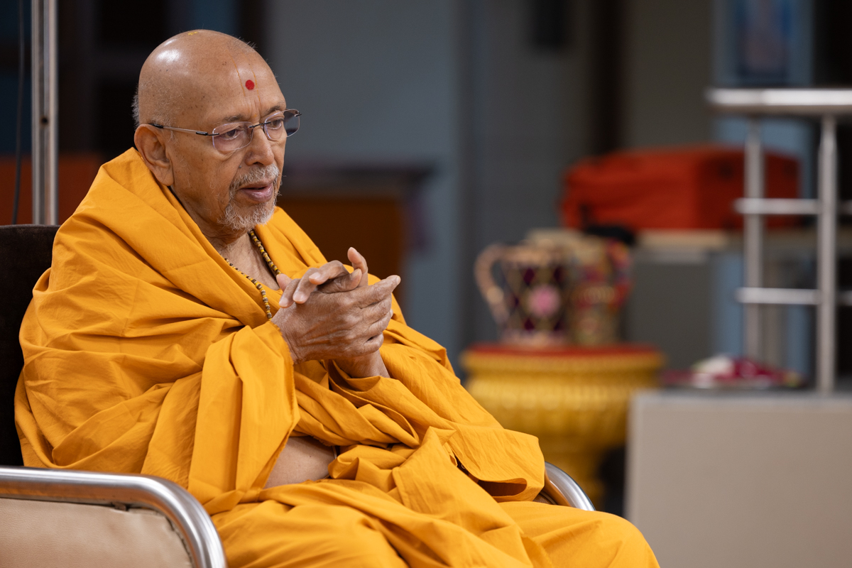 Param Pujya Mahant Swami Maharaj on his way to perform his daily puja