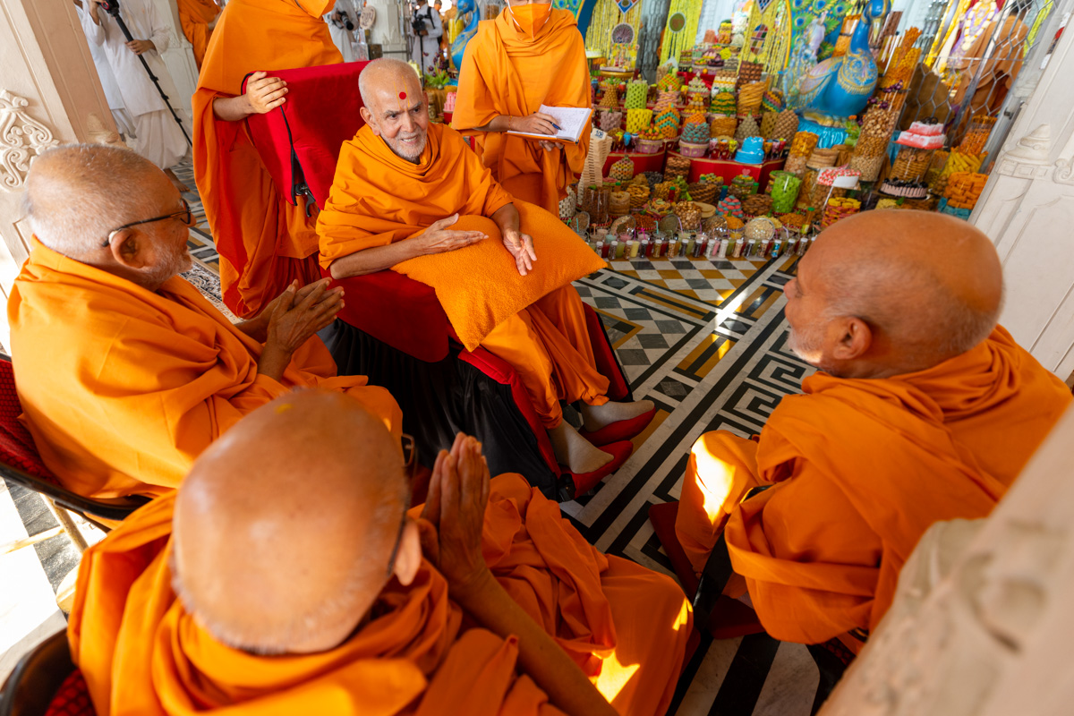 Anandswarup Swami performs the 108th patotsav rituals of BAPS Shri Swaminarayan Mandir, Sarangpur