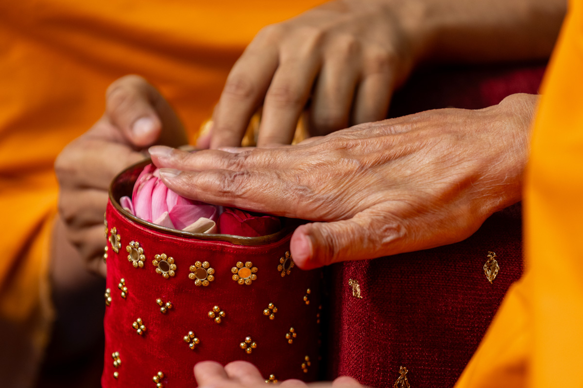 Swamishri sanctifies water with the holy relics of Bhagwan Swaminarayan and the Guru Parampara