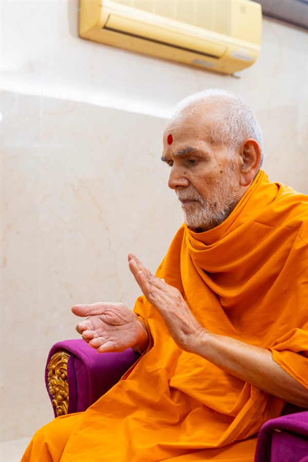 Pujya Bhaktipriya Swami (Kothari Swami) doing darshan of Swamishri