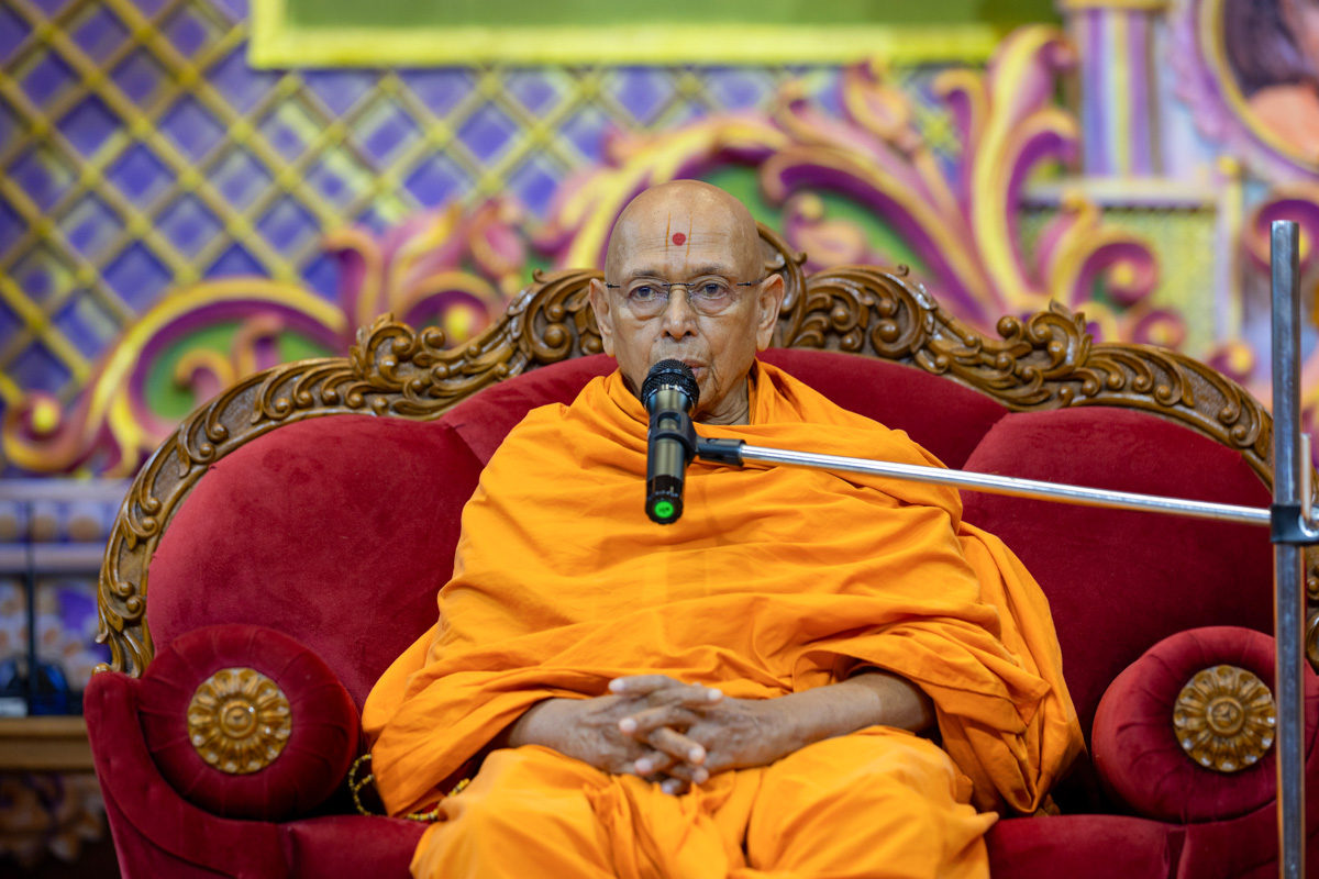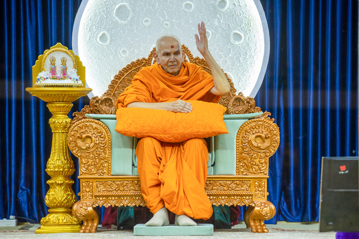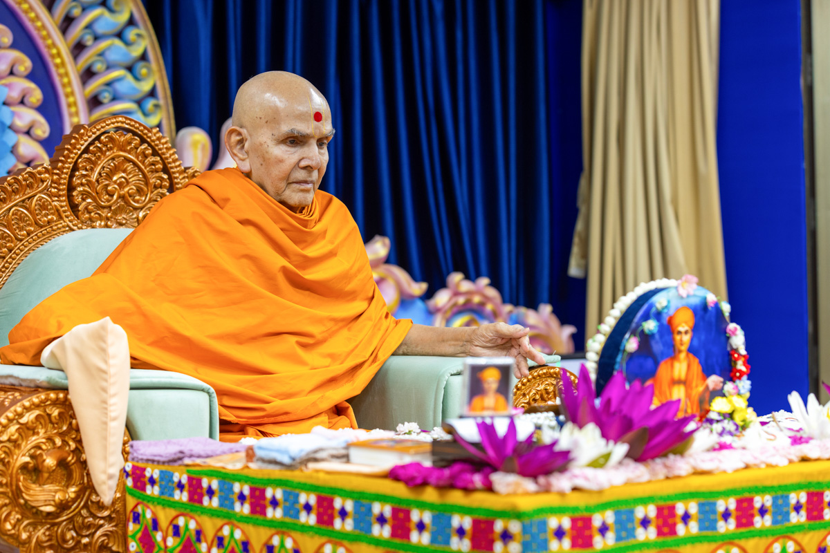 Swamis doing darshan of Param Pujya Mahant Swami Maharaj