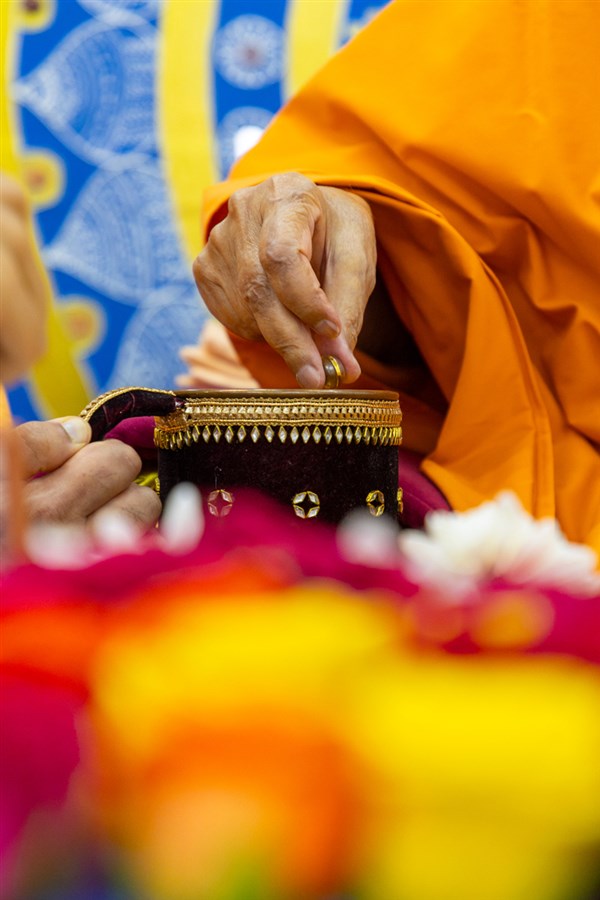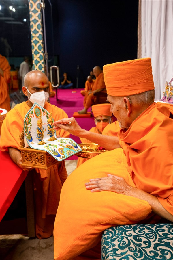 Swamishri performs the sakar tula