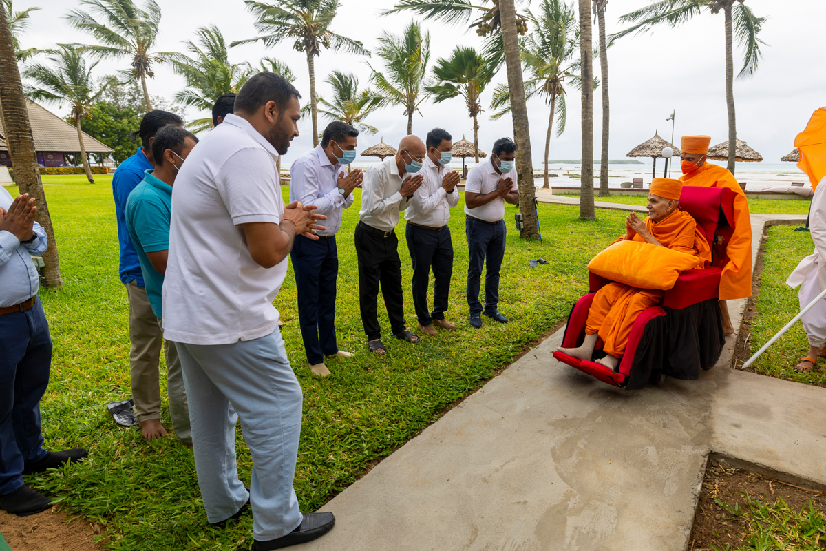 Swamishri departs from White Sands Hotel and The Beach Resort
