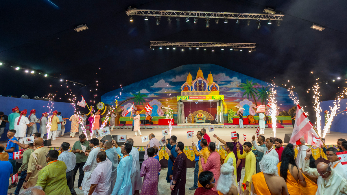 Local youths perform before Swamishri