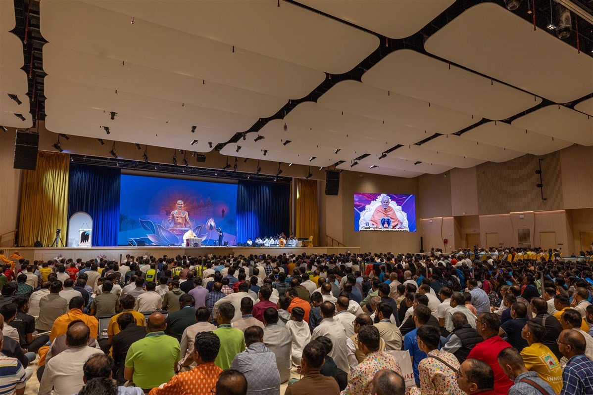 Swamishri presides over the ‘Day of Gratitude’ assembly to appreciate all those who have supported and contributed to the new BAPS Hindu Mandir in Abu Dhabi